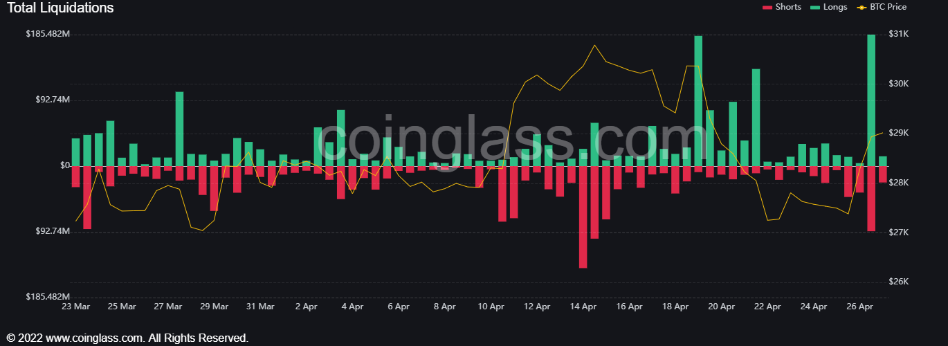 Tuy nhiên, BTC đã phục hồi gần 5% từ mức giảm đó lên mức cao nhất 29,000 USD một lần nữa tại thời điểm viết bài. Do đó, khối lượng thanh lý BTC đã giảm xuống chỉ còn 22 triệu USD trong bốn giờ qua kể từ đợt bán tháo hoảng loạn.