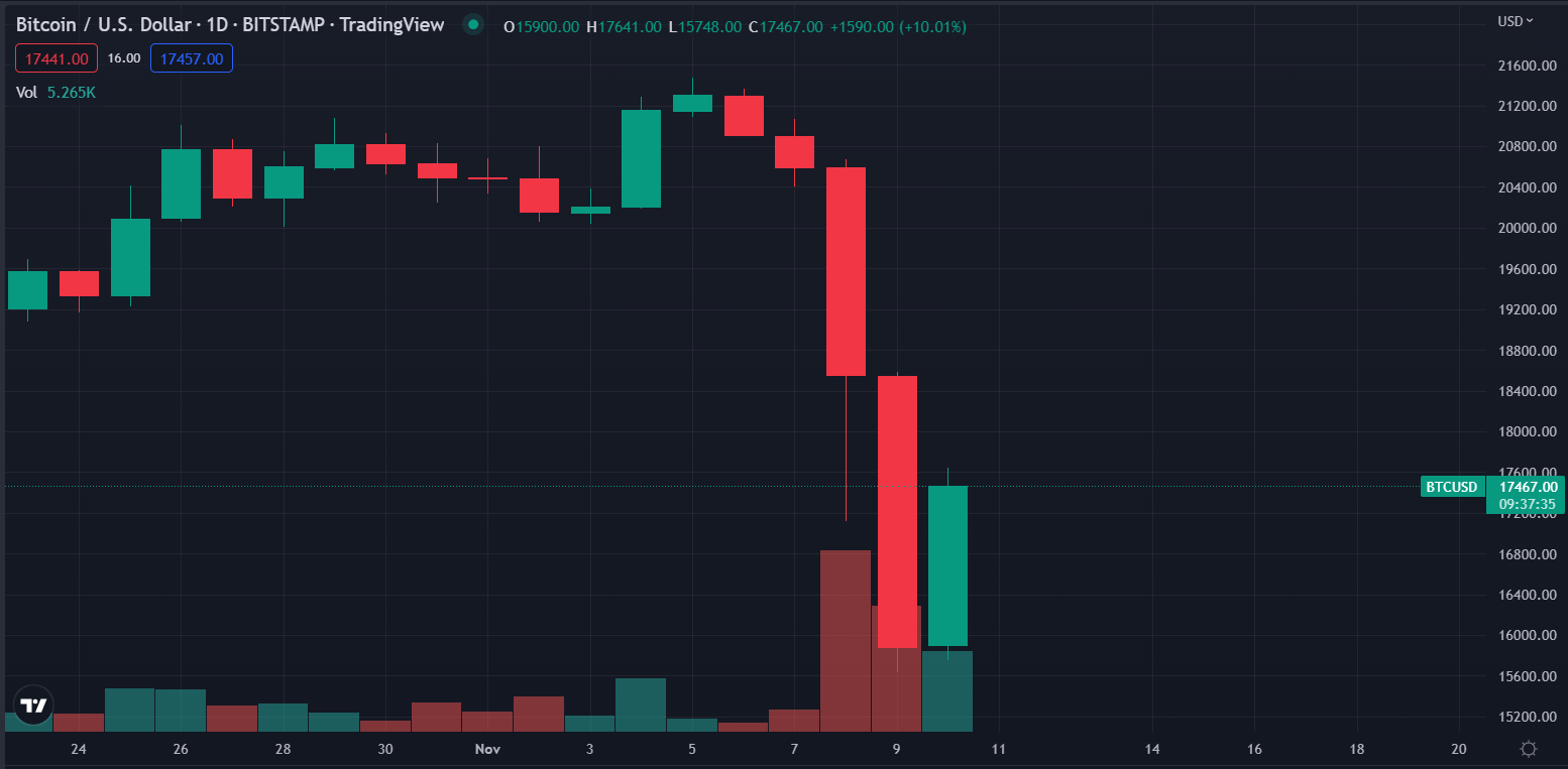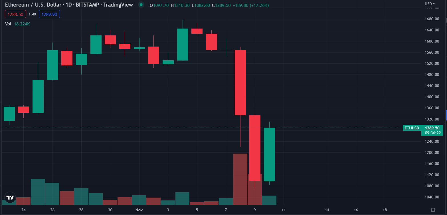 Vào thời điểm BeInCrypto viết bài, thị trường tiền điện tử phản ứng khá tích cực với tin tức về chỉ số CPI tháng 10 tại Mỹ. Theo đó, Bitcoin tăng lên mốc 17,400 USD và Ethereum tăng 3.1% lên 1,280 USD. Hơn nữa, XRP và ADA đã đạt được mức tăng hơn 2%. Trong khi meme coin yêu thích tỷ phú Elon Musk, DOGE tăng 6.5%.