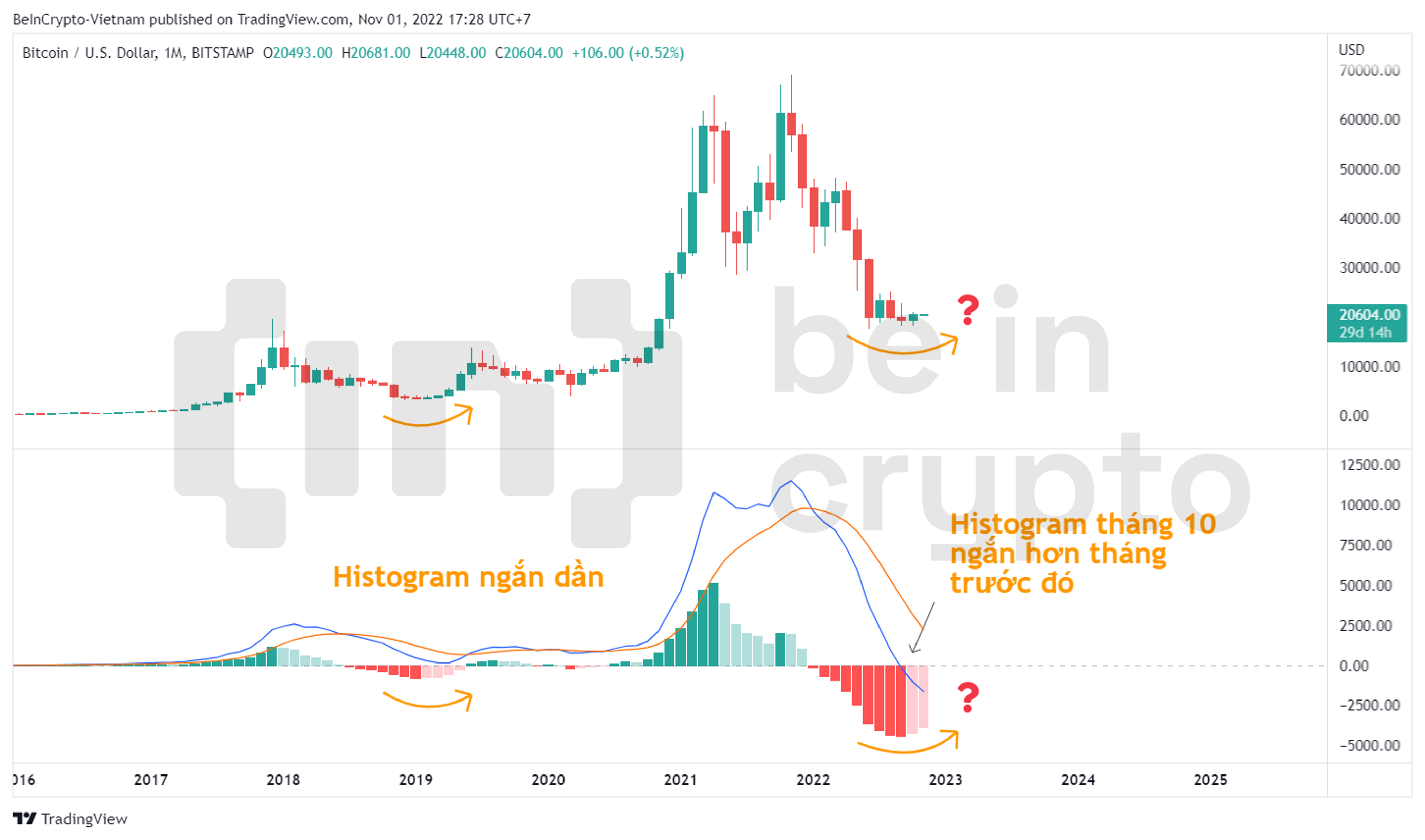 Giá Bitcoin tháng 10 trên 20,400 USD. Tín hiệu bullish từ chỉ báo MACD-H khung tháng