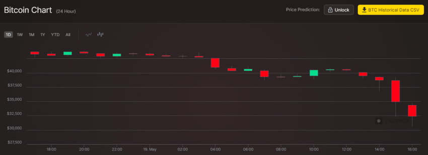 Có thời điểm vào ngày 19 tháng 5, giá Bitcoin đã giảm xuống gần mức 28,000 USD. Tại thời điểm viết bài, Bitcoin (BTC) đang được giao dịch ở mức 33,170 USD.
