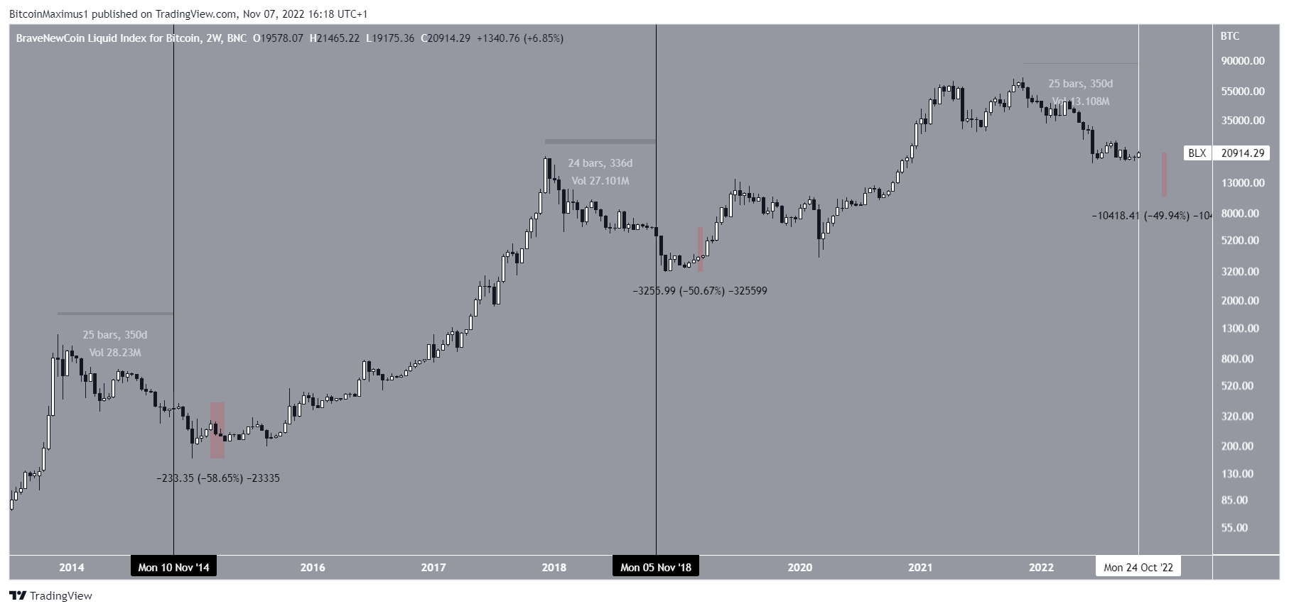 Điểm tương đồng chính khi nhìn vào biến động giá Bitcoin. Là thời gian từ lúc BTC đạt mức ATH cho đến khi các cuộc bầu cử giữa nhiệm kỳ Mỹ diễn ra. Cụ thể hơn, có 350 ngày sau cuộc bầu cử năm 2014 và 336 ngày sau cuộc bầu cử năm 2018.
