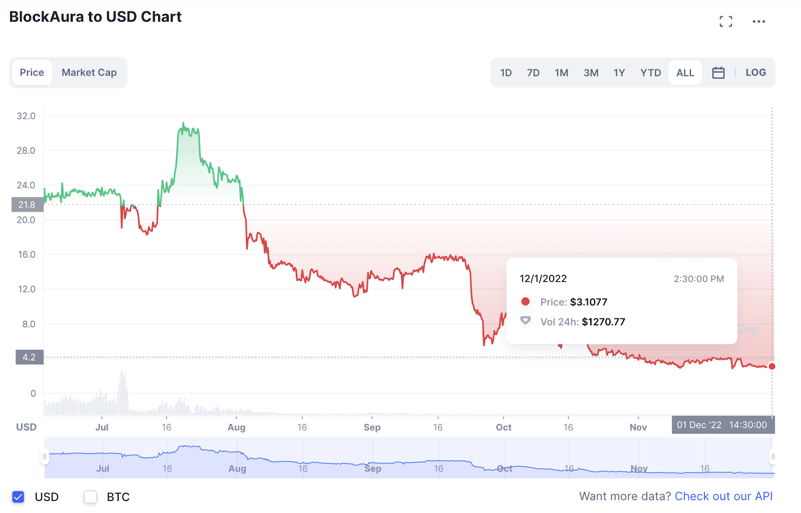 Hầu hết các dự án mang lại lợi suất APY cao đã sụp đổ khi thị trường gấu diễn ra. Gần đây nhất, BlockFi đã nộp đơn xin phá sản theo chương 11, trong khi Genesis đang cố gắng gây quỹ để ngăn chặn phá sản. Tuy nhiên, BlockAura tuyên bố sẽ cung cấp hơn 25% phần thưởng staking hàng tháng.
