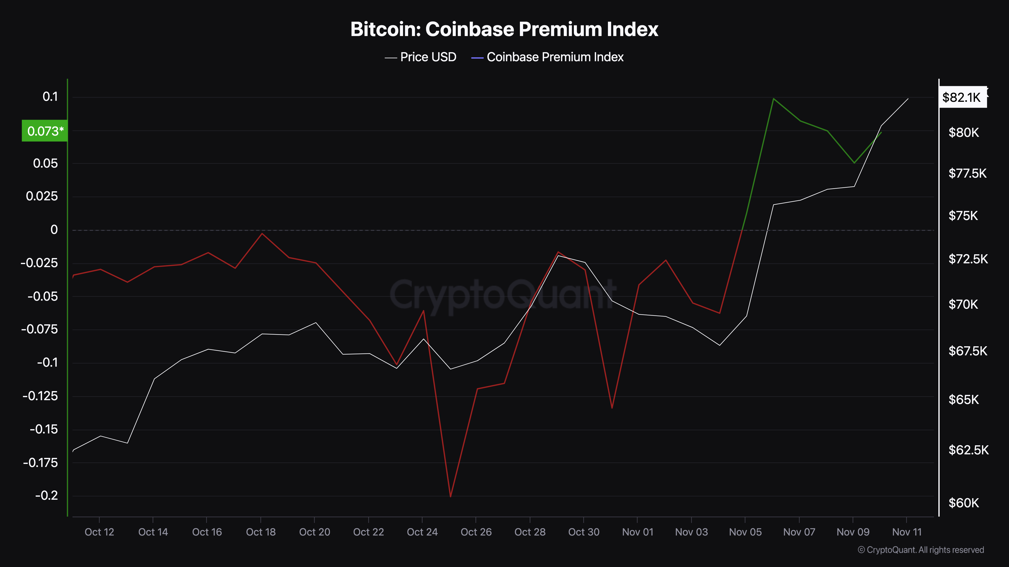 Mặc dù có ý kiến của CEO CryptoQuant, Coinbase Premium Index đã cho thấy một sự gia tăng đáng chú ý. Chỉ số này đo lường hoạt động của các nhà đầu tư nhỏ lẻ ở Mỹ. Các giá trị cao có thể chỉ ra áp lực mua mạnh từ các nhà đầu tư nhỏ lẻ ở Mỹ trên Coinbase. Ngược lại, một giá trị thấp có thể cho thấy áp lực bán cao. Do đó, vì chỉ số hiện tại cho thấy điều ngược lại, giá Bitcoin có thể tiếp tục tăng.