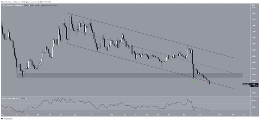 Theo ghi nhận của BeInCrypto, trên thực tế thì giá Curve DAO token đã đạt mức thấp nhất là 0.42 USD vào ngày 22/11. Mặc dù điều này dường như khiến giá CRV phá vỡ khỏi kênh song song giảm dần, nhưng may mắn là giá đã không chạm đến mức đóng nến dưới kênh kể từ đó. Do đó, sự cố này về cơ bản không được xác nhận.