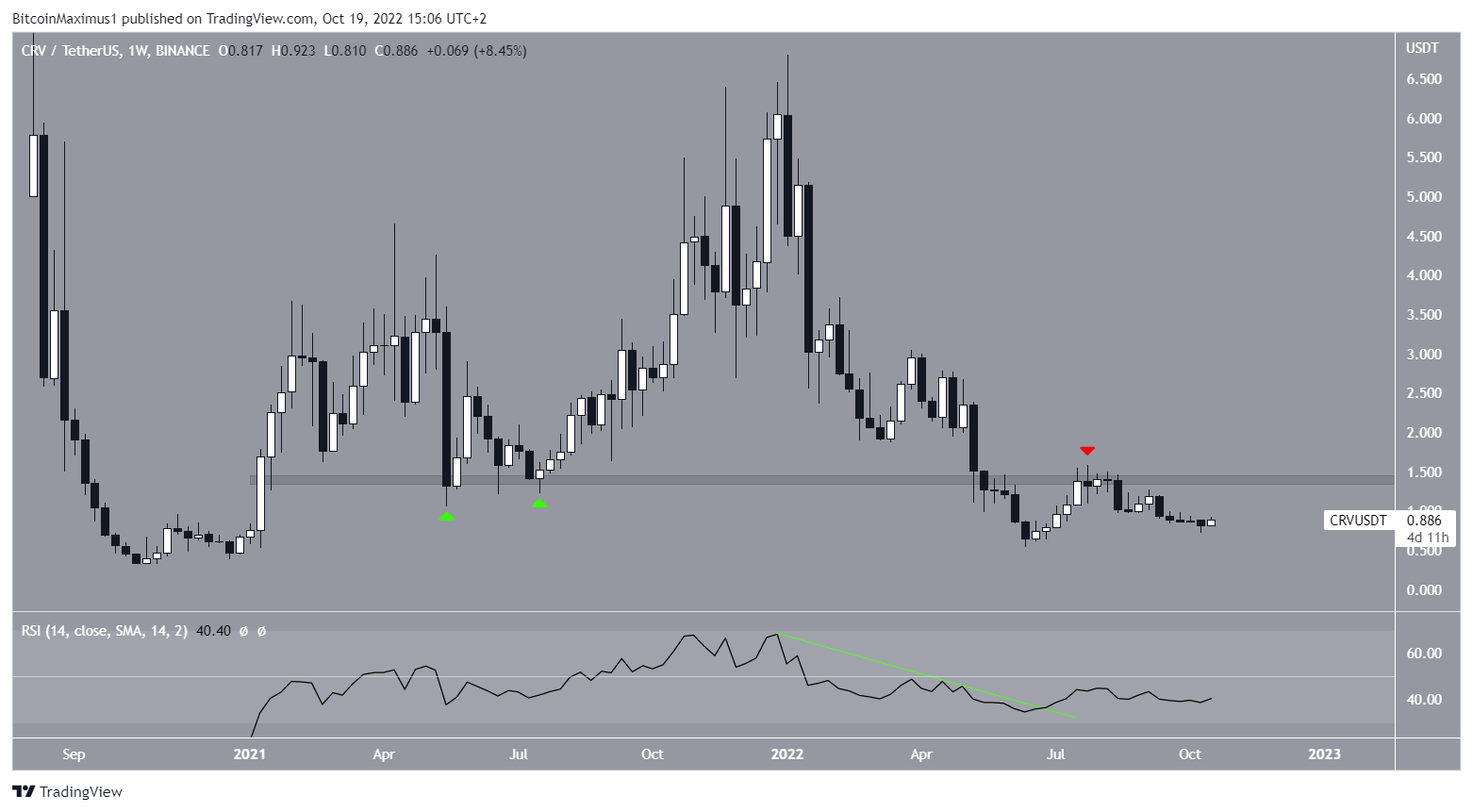 Có một vùng kháng cự quan trọng ở mức 1.40 USD. Mức này trước đây đã đóng vai trò là hỗ trợ. Cho đến khi giá CRV đóng nến tuần trên mức này, xu hướng dài hạn không thể được coi là tăng. Ngoài ra, trong khi chỉ báo RSI hàng tuần đã bứt phá khỏi đường kháng cự giảm dần, nó vẫn đang giao dịch dưới mức 50.