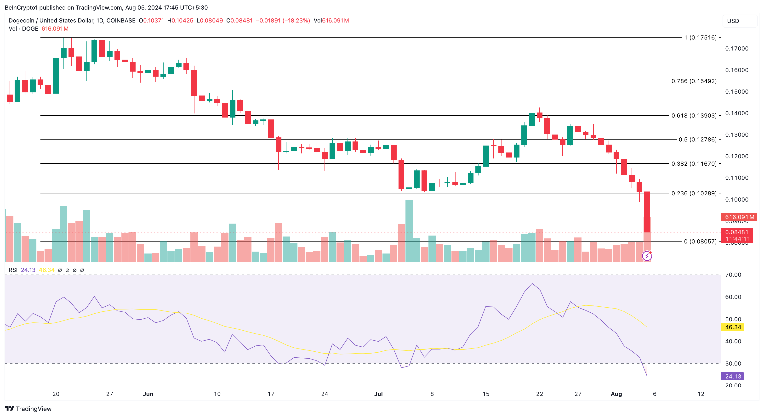 Mặc dù DOGE không phải là đồng tiền mã hóa duy nhất bị ảnh hưởng bởi sự sụt giảm, nó đã ghi nhận mức giảm giá cao nhất trong số các tài sản thuộc top 10 theo vốn hóa thị trường.