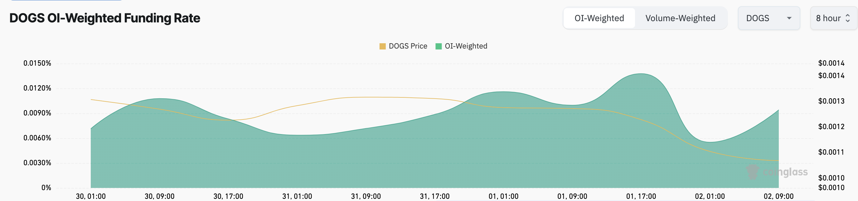 Xét về tỷ lệ tài trợ tăng và hoạt động giá gần đây, có vẻ như DOGS có thể sắp di chuyển về phía kháng cự trên của nó.