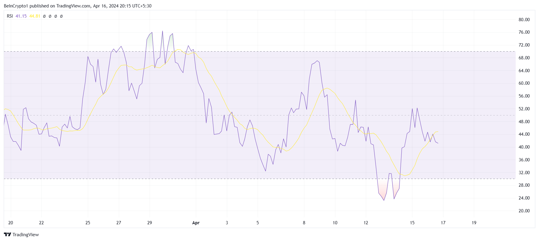 WIF đang gặp khó khăn để lấy lại sự tăng giá mà nó đã mất trong các đợt điều chỉnh gần đây. Sau khi bật trở lại từ vùng quá bán, Chỉ số sức mạnh tương đối (RSI) gần như đã phá vỡ mốc trung tính tại 50.0. Tuy nhiên, nó đã không đóng cửa phía trên nó, và một sự sụt giảm đã được ghi nhận. Đây là một sự phát triển giảm giá đối với meme coin này vì việc bắt đầu một xu hướng tăng đòi hỏi sự hỗ trợ từ các nhà đầu tư hoặc các tín hiệu thị trường rộng lớn hơn.
