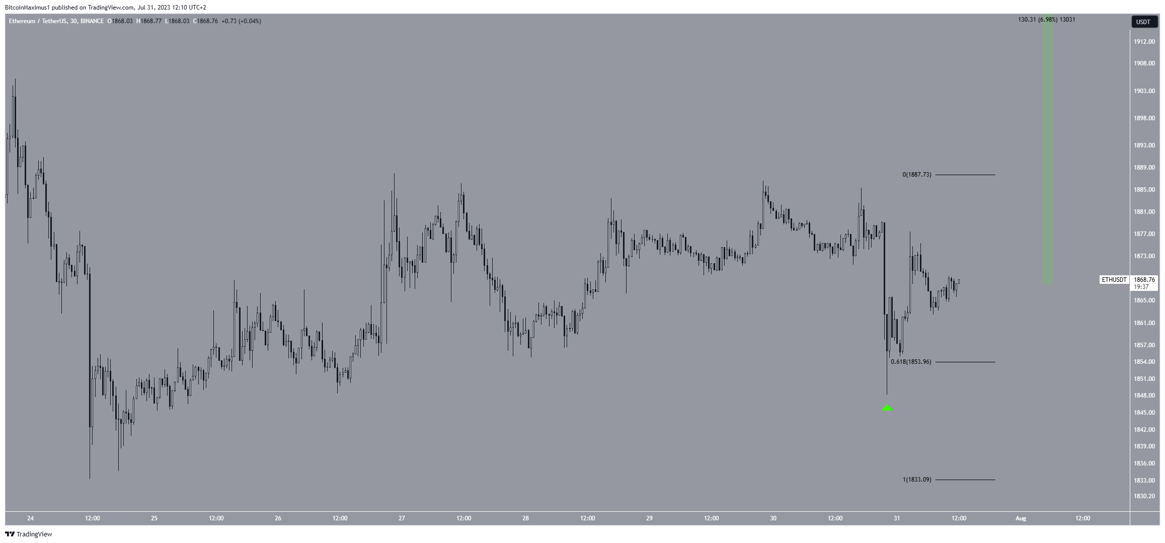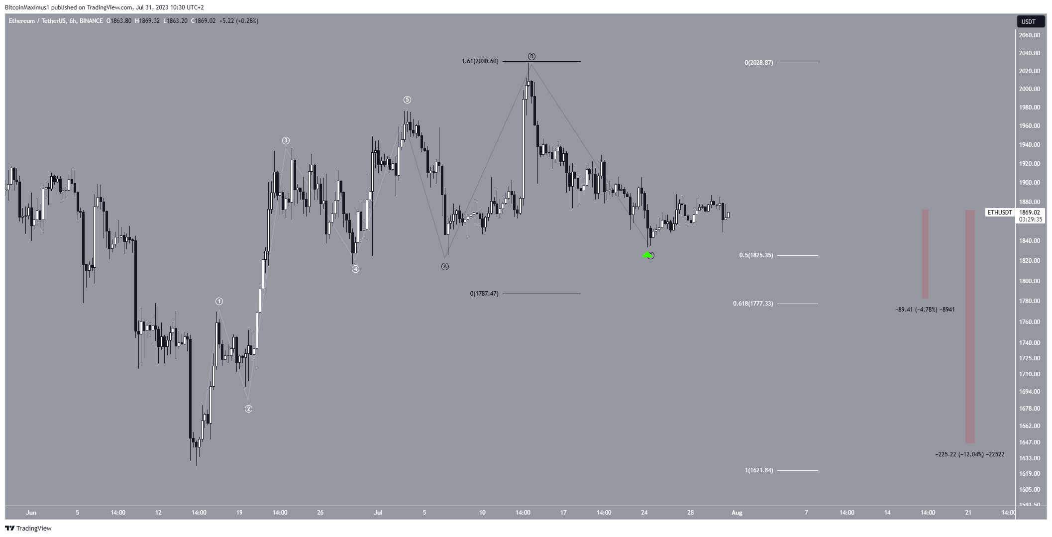 Bất chấp dự đoán giá ETH tăng này, việc giảm xuống dưới mức thấp nhất vào ngày 30/7 là 1,848 USD (đường màu đỏ) có nghĩa là quá trình điều chỉnh vẫn chưa hoàn tất. Trong trường hợp đó, giá ETH có thể giảm xuống mức hỗ trợ đã vạch ra trước đó là 1,780 USD.