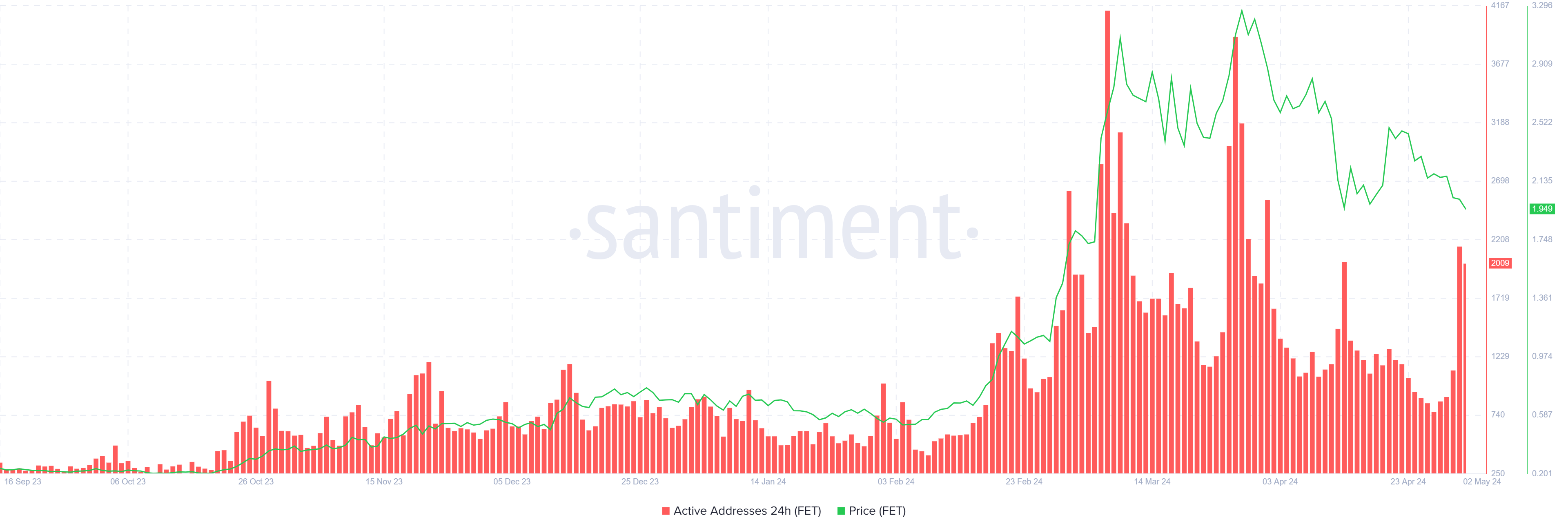 Tổng số nhà đầu tư thực hiện giao dịch trên mạng tăng từ 1,152 lên 2,152, đánh dấu mức tăng 93%. Mặc dù điều này có thể được hiểu là những người nắm giữ FET cố gắng bán để giảm thiểu tổn thất của họ, nhưng bức tranh lớn hơn là tăng giá.