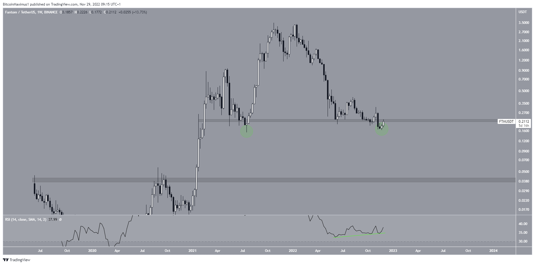 Một sự gia tăng tương tự có thể xảy ra nếu FTM lấy lại mức 0.22 USD này. Tuy nhiên, chỉ báo RSI tuần đã hình thành phân kỳ giảm (đường màu xanh lá cây). Tại thời điểm BeInCrypto viết bài này, FTM hầu như không có hỗ trợ nào dưới mức giá hiện tại cho đến 0.04 USD. Do đó, nếu FTM bị từ chối tại ngưỡng kháng cự trên, một xu hướng giảm rất mạnh có thể diễn ra trong tương lai.