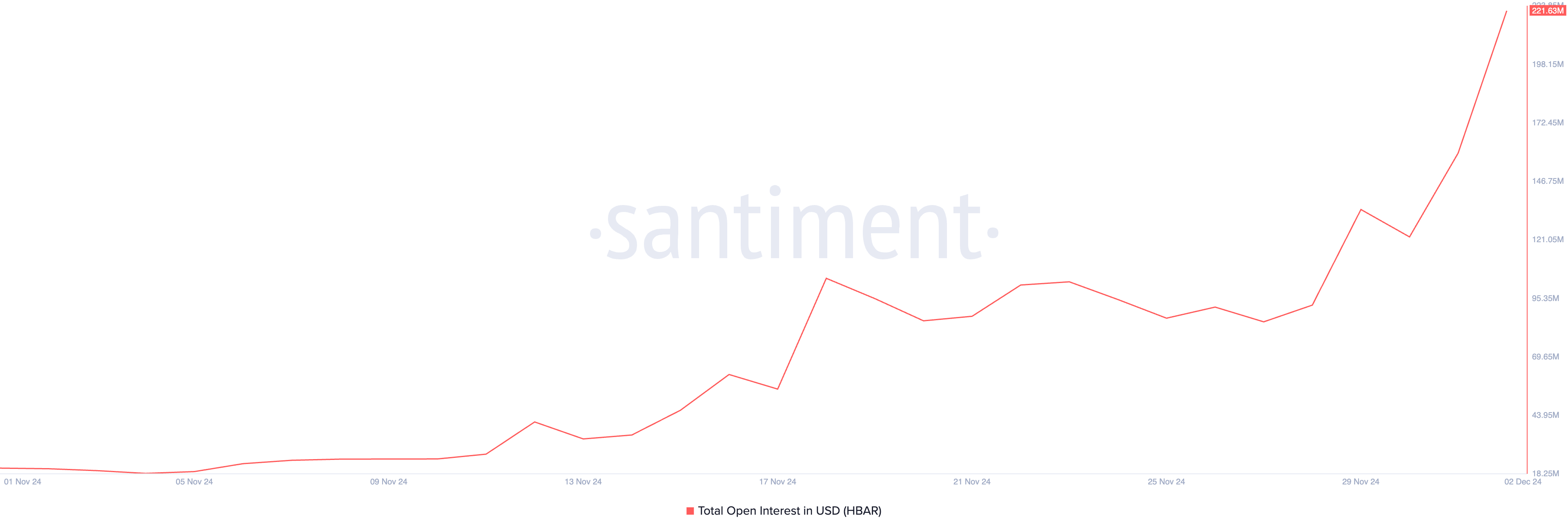SponsoredThêm vào đó, công ty đầu tư tiền điện tử Canary Capital đã nộp đề xuất lên SEC cho quỹ ETF Hedera HBAR đầu tiên. Điều này sẽ cung cấp cho các nhà đầu tư tổ chức khả năng tiếp cận trực tiếp với token HBAR nếu được chấp thuận. Những động thái này đã thu hút sự chú ý của thị trường, được phản ánh qua sự gia tăng lãi suất mở (Open interest) của HBAR. Tại thời điểm viết bài, nó là 222 triệu USD, đã tăng hơn 1000% trong 30 ngày qua.