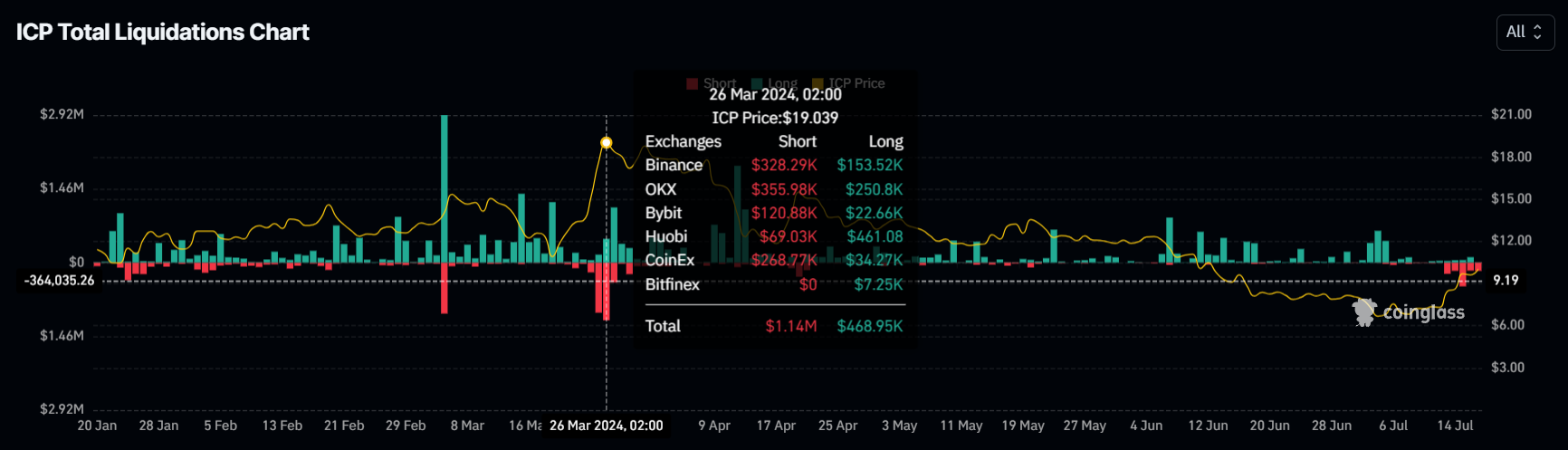 Tuy nhiên, đà phục hồi gần đây của ICP cũng đã gây ra hậu quả đáng kể cho các nhà giao dịch bán khống. Việc giá ICP phục hồi mạnh dẫn đến khối lượng thanh lý Short cao nhất được thấy trong hơn bốn tháng, lên tới 470,000 USD. Thanh lý Short xảy ra khi các nhà giao dịch buộc phải đóng các vị thế Short của họ với mức thua lỗ do giá tăng, điều này có thể khuếch đại biến động giá hơn nữa.