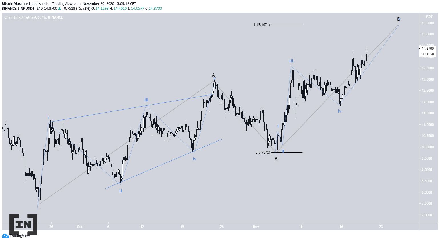 SponsoredPhạm vi giá chiếu từ sóng A xuống đáy B cho thấy mức giá 15,40 USD. Giá này trùng với mức kháng cự Fibo 0,618 như được nhắc đến phía trên. Nhiều khả năng giá LINK đạt được mức giá cao khi kết thúc quá trình.