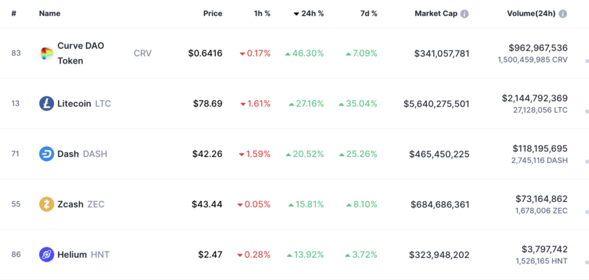 Litecoin chiếm vị trí thứ 2 trong danh sách những đồng coin tăng trên CoinMarketCap. Nó tăng 27.16%, chỉ đứng sau CRV với mức tăng hơn 45% hàng ngày. Với việc LTC đang hoạt động trở lại và mang về một số lợi ích thú vị cho người nắm giữ, Litecoin xứng đáng để chúng ta cùng phân tích kỹ hơn về nó.