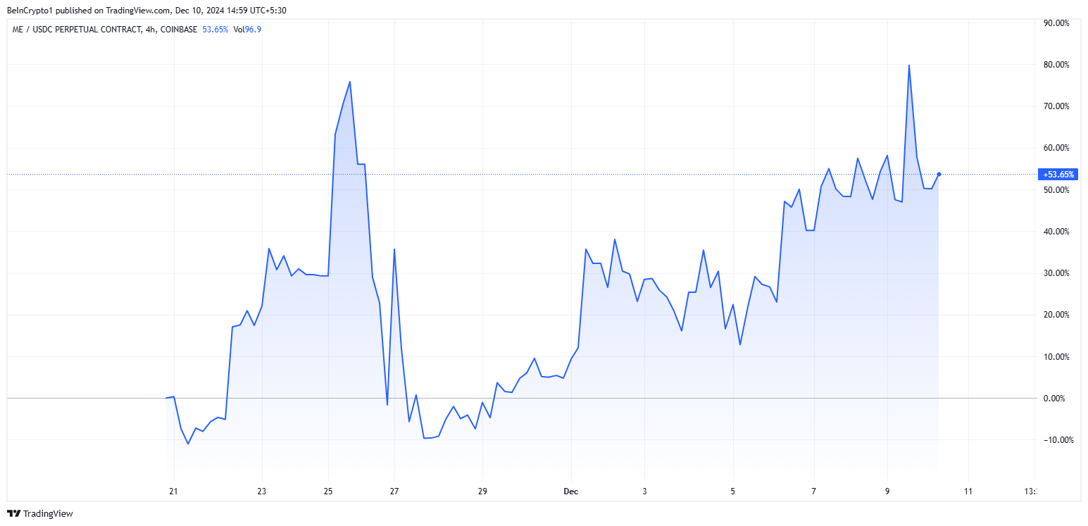 Ngay sau thông báo niêm yết, token ME của Magic Eden đã tăng vọt hơn 53%.