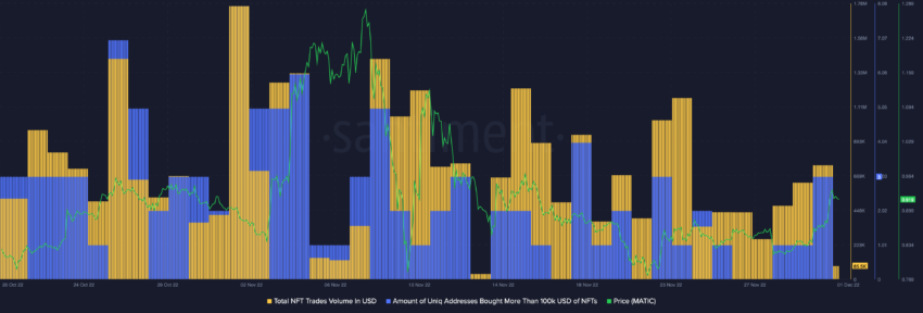 Vào tháng 11/2022, giá MATIC của Polygon đã giảm xuống dưới vùng hỗ trợ 1 USD sau khi đạt mức cao nhất trong nhiều tháng là 1.3 USD. Tuy nhiên, khi tháng 12 bắt đầu, khối lượng giao dịch hàng ngày đã tăng 92% lên 511 triệu USD.