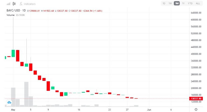 Sự sụp đổ của thị trường tiền điện tử kéo dài vào tháng 5 đã khiến mức độ quan tâm của nhà đầu tư đối với NFT đi xuống đáng kể. Điều này làg nguyên nhân chính chịu trách nhiệm phần lớn cho việc giảm giá trị của NFT Bored Ape Yacht Club.