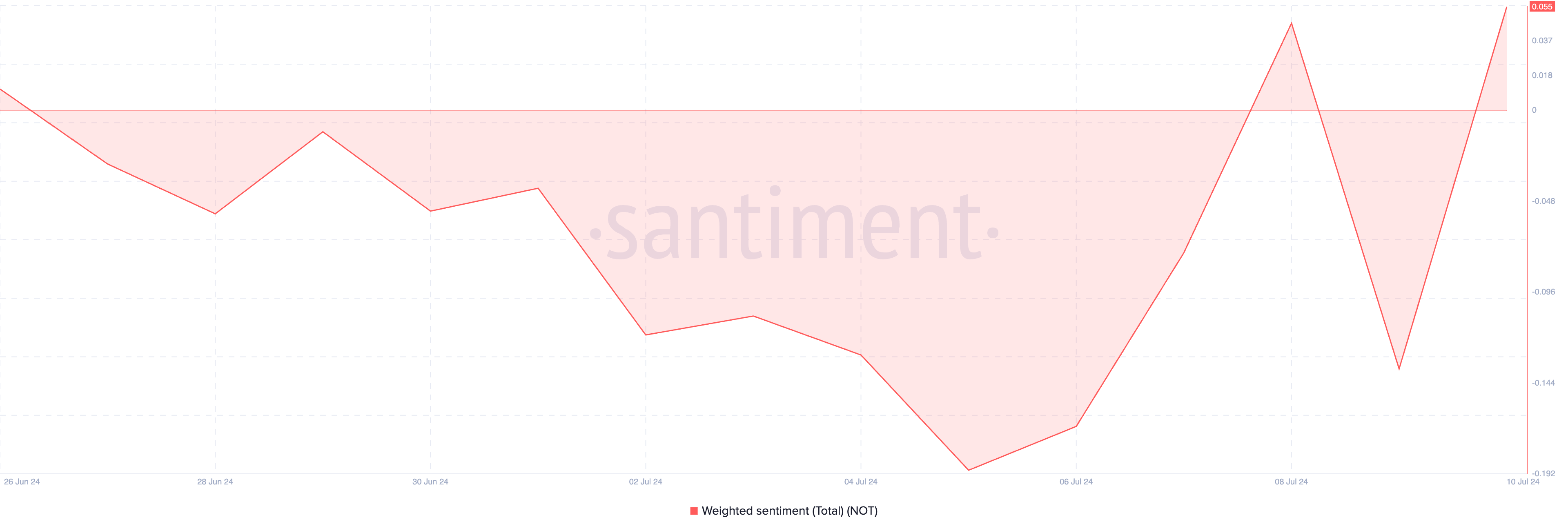 Khi giá trị này của một tài sản cao hơn không, hầu hết các cuộc thảo luận về nó trên các nền tảng mạng xã hội đều được thúc đẩy bởi cảm xúc tích cực. Nếu NOT tiếp tục nhận được sự ủng hộ tích cực này, giá của nó có thể tăng lên mức 0.017 USD.