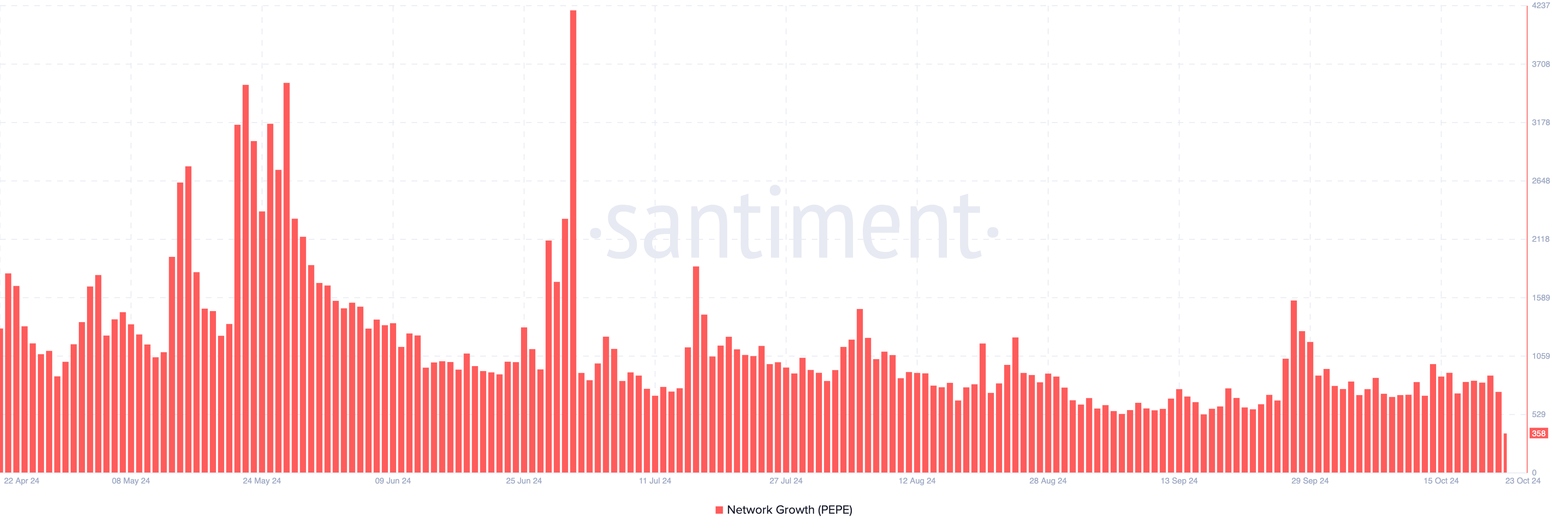 Khi chỉ số này tăng, nó có nghĩa là số lượng người tham gia thị trường thực hiện giao dịch thành công đầu tiên của họ đã tăng. Ngược lại, một sự giảm cho thấy sự thu hút trên mạng lưới đã giảm. Nếu sự suy giảm này kéo dài, nó có thể dẫn đến việc giảm nhu cầu đối với PEPE. Điều này, đến lượt nó, có thể khiến giá khó có thể tăng.