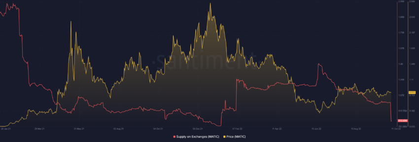 Sponsored SponsoredNguồn cung MATIC giảm mạnh trên các sàn giao dịch. Điều này càng cho thấy tâm lý thị trường tăng giá đối với đồng coin này. Sự sụt giảm số dư trên các sàn giao dịch được coi là dấu hiệu tăng giá khi các nhà giao dịch và nhà đầu tư chuyển số tiền nắm giữ của họ từ các sàn giao dịch sang ví lạnh để lưu trữ dài hạn.
