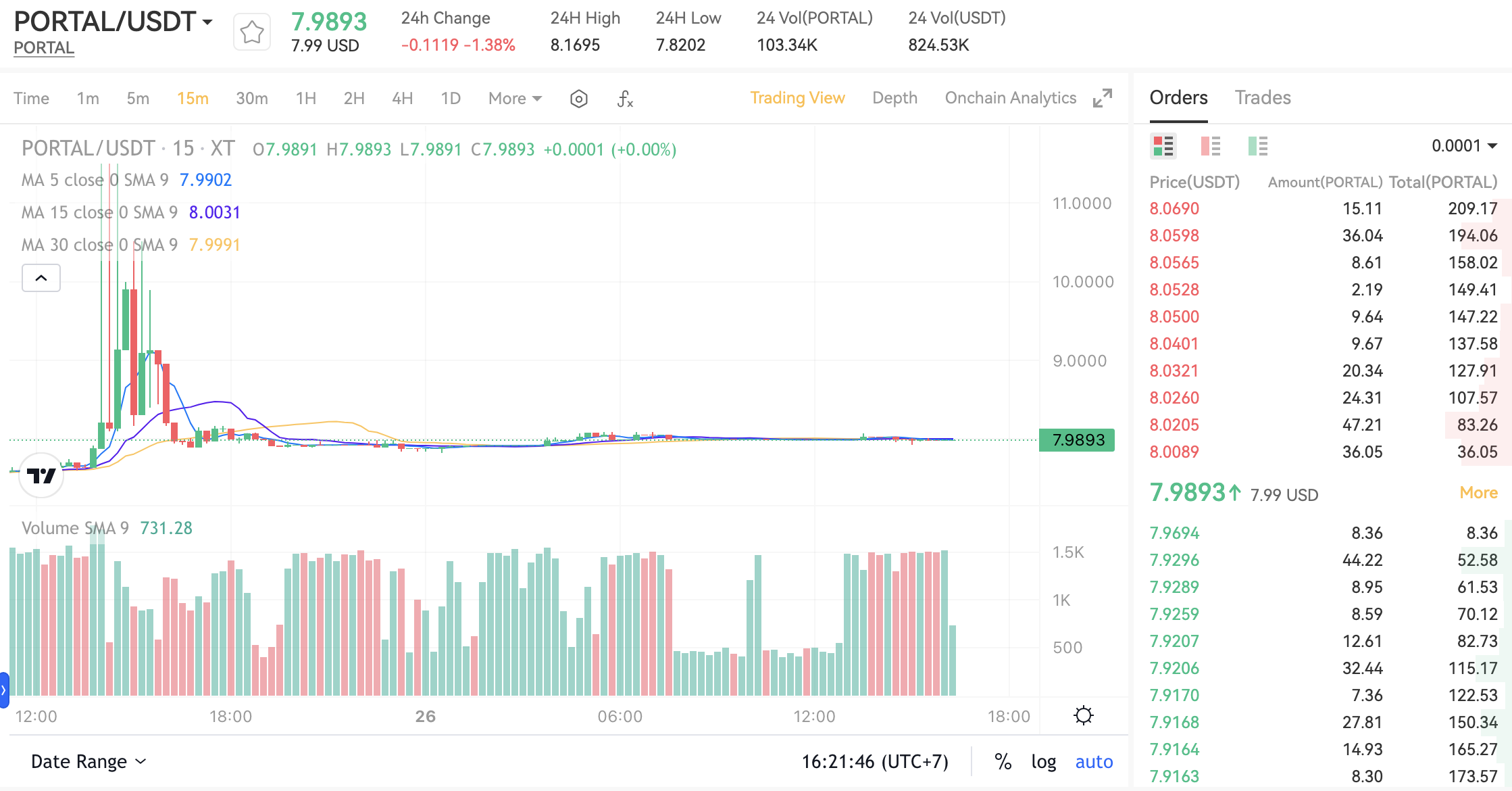 Cụ thể, theo thống kê của BeInCrypto, trên sàn giao dịch XT, cặp giao dịch PORTAL/USDT đang được giao dịch ở mức gần 8 USD. Đáng chú ý, mức giá cao nhất mà PORTAL coin đã từng đạt được trên sàn giao dịch này lên đến gần 12 USD.