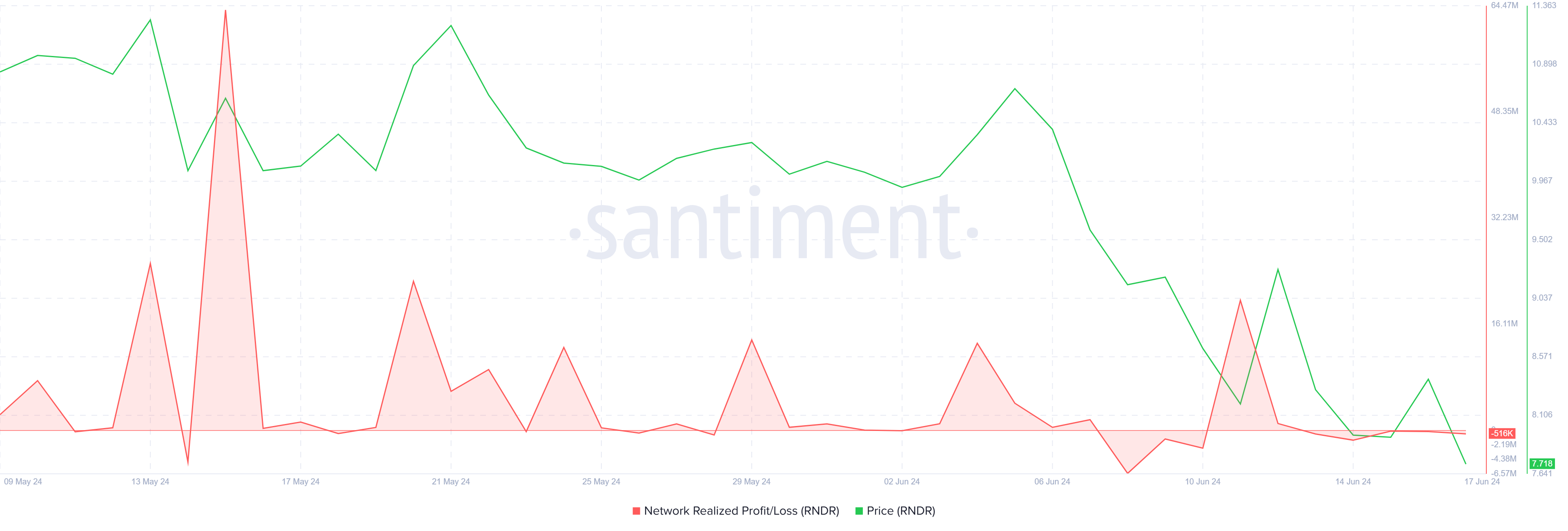 Bên cạnh đó, trong hai tuần qua, đã có sự gia tăng đáng chú ý về số lượng bán ra trên mạng lưới. Đợt chốt lời này đã đạt đến mức cao nhất trong tháng, phản ánh sự thận trọng ngày càng tăng của các nhà đầu tư. Những khoản lỗ tăng lên đã thúc đẩy các chủ sở hữu RNDR bán tháo tài sản của họ.