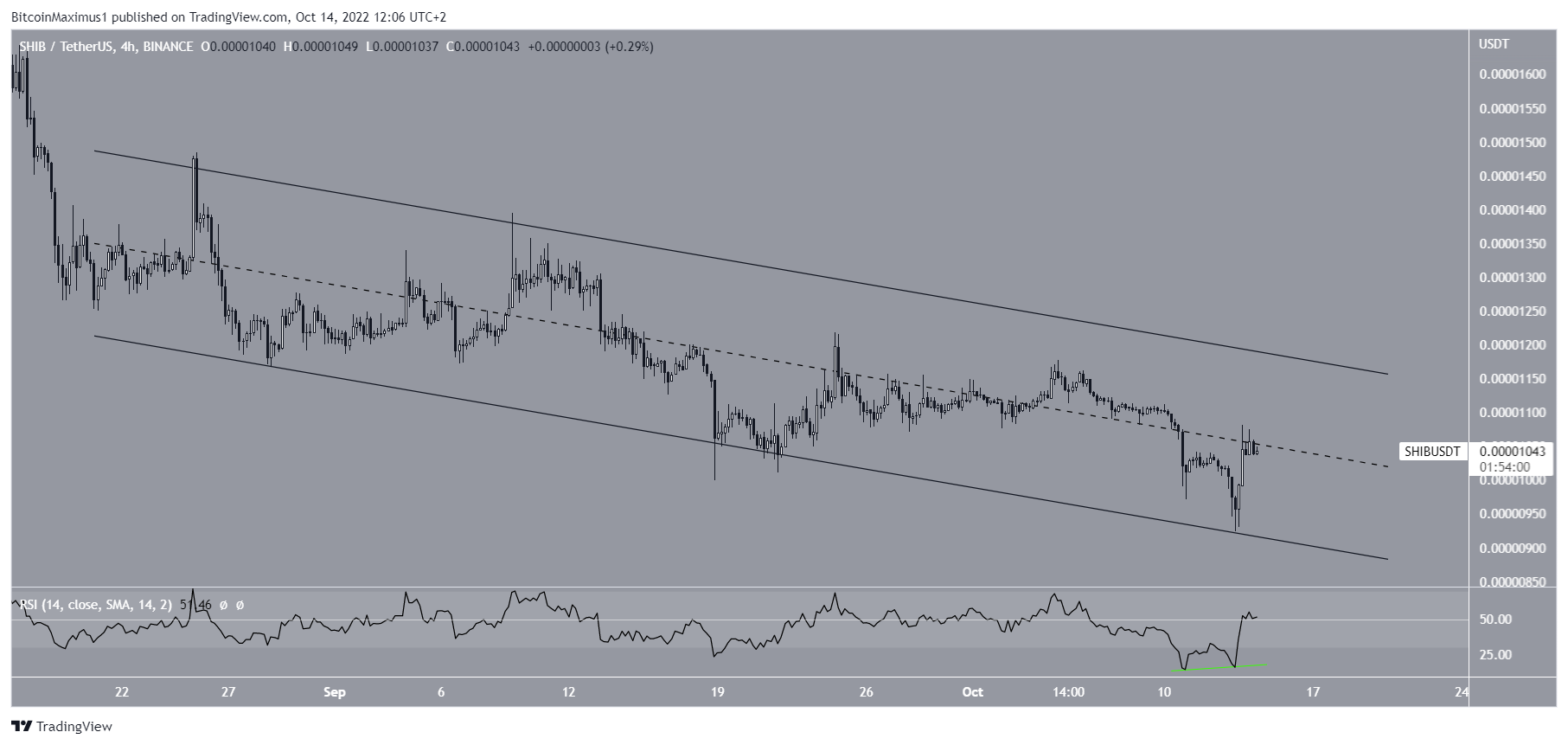 Giá Shiba Inu (SHIB) đã giảm kể từ khi đạt mức cao 0.00001800 USD vào ngày 14/8. Phong trào giảm cho đến nay đã dẫn đến mức thấp nhất là 0.00000924 USD vào ngày 14/10. Giá Shiba Inu đã bật lên sau đó và tạo ra một cây nến hình búa tăng (biểu tượng màu xanh lá cây).
