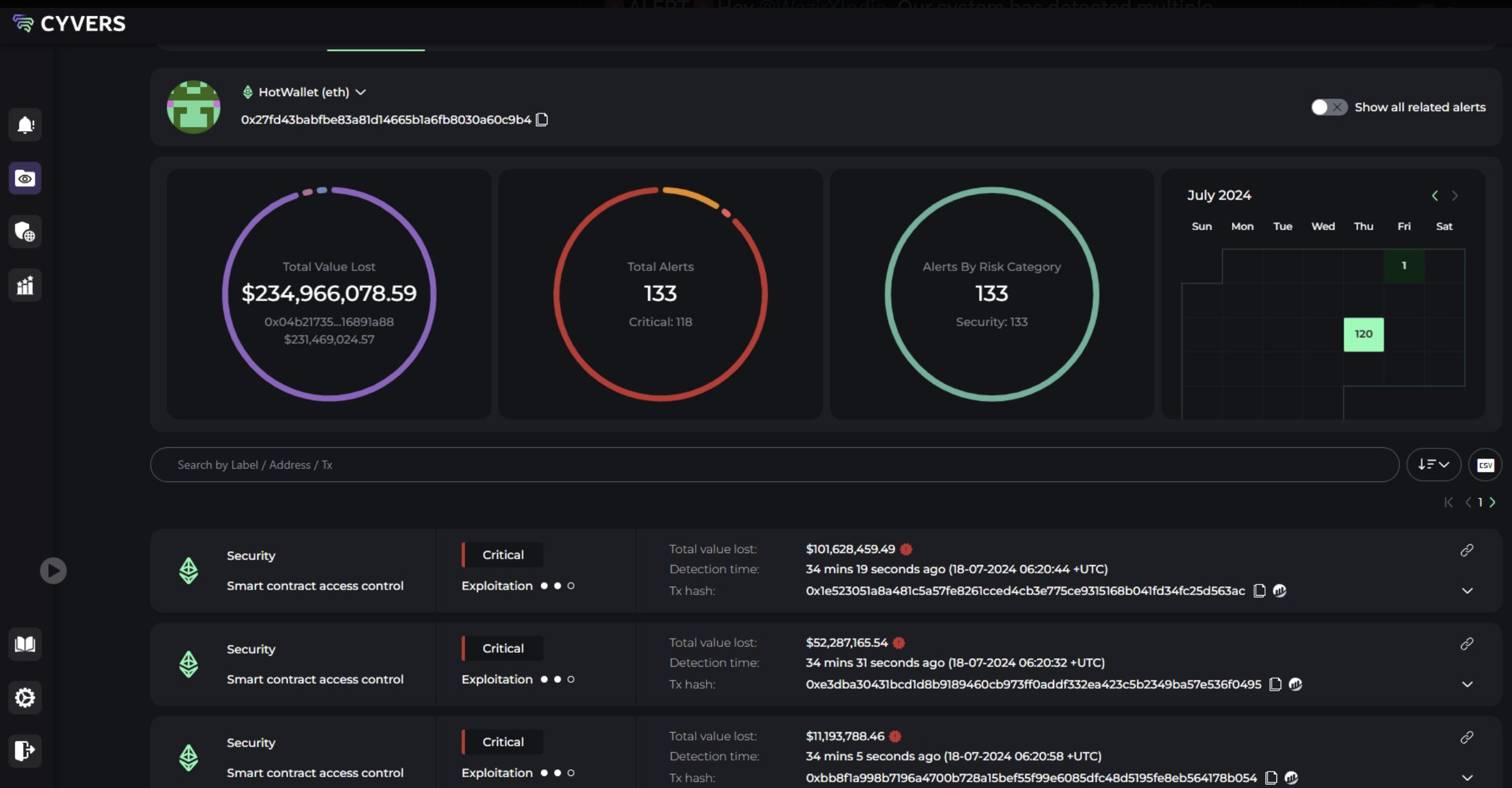 Vào ngày 18/07, một nền tảng bảo mật tài sản kỹ thuật số, Cryverse Alert, đã đăng tải rằng WazirX, một sàn giao dịch tiền điện tử tại Ấn Độ, đã bị hack. Theo chi tiết, các thủ phạm đã đánh cắp 234.90 triệu USD tiền điện tử.