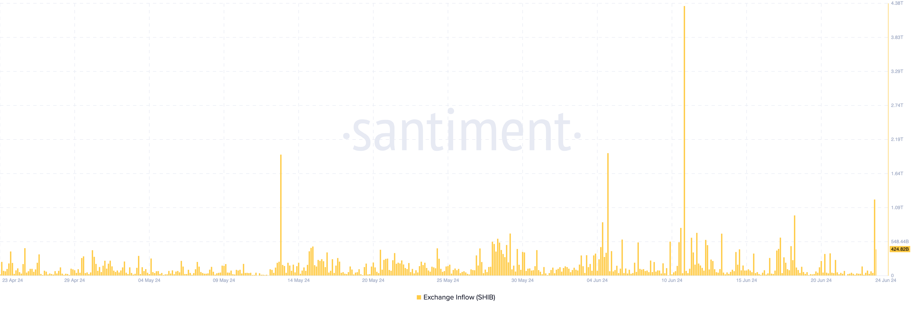 Tuy nhiên, một sự giảm cho thấy các thành viên đang rút tài sản của họ khỏi các nền tảng này để giữ lâu dài, điều này là tốt cho giá. Lượng token SHIB nhập vào sàn giao dịch đã vượt quá 1 nghìn tỷ vào đầu ngày, cho thấy token đã phải đối mặt với áp lực bán ra mạnh mẽ.