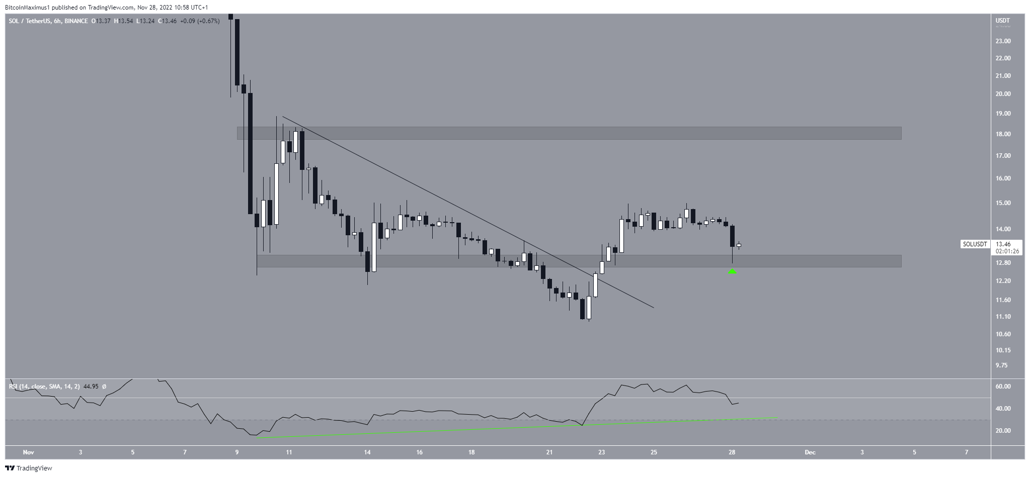 Mặc dù SOL đã giảm trong 24 giờ qua, nhưng đường xu hướng phân kỳ tăng vẫn còn nguyên và giá SOL đã bật lên tại vùng hỗ trợ 13 USD. Do đó, xu hướng tăng ngắn hạn vẫn còn hiệu lực. Tóm lại, các phân tích từ khung thời gian 6 giờ cho thấy giá SOL có thể tăng lên 17.50 USD.
