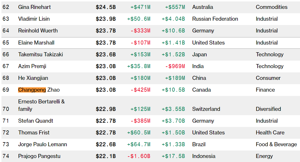 Hồi cuối tháng 4/2023, Bloomberg đã có bài viết trong đó ước tính giá trị tài sản ròng của CZ thời điểm đó vào khoảng 28 tỷ USD và xếp anh là người giàu thứ ba thế giới trong lĩnh vực tài chính. Đáng chú ý hơn nữa khi vào tháng 6 năm ngoái, tờ Guardian, trích dẫn ước tính của Bloomberg Billionaires Index, cho biết tài sản ròng của Zhao đã giảm hơn 75 tỷ USD kể từ tháng 1, xuống còn 20.6 tỷ USD chỉ sau 5 tháng. Vào tháng 10 cùng năm, Business Insider đã báo cáo giá trị tài sản ròng của Zhao là 30 tỷ USD.