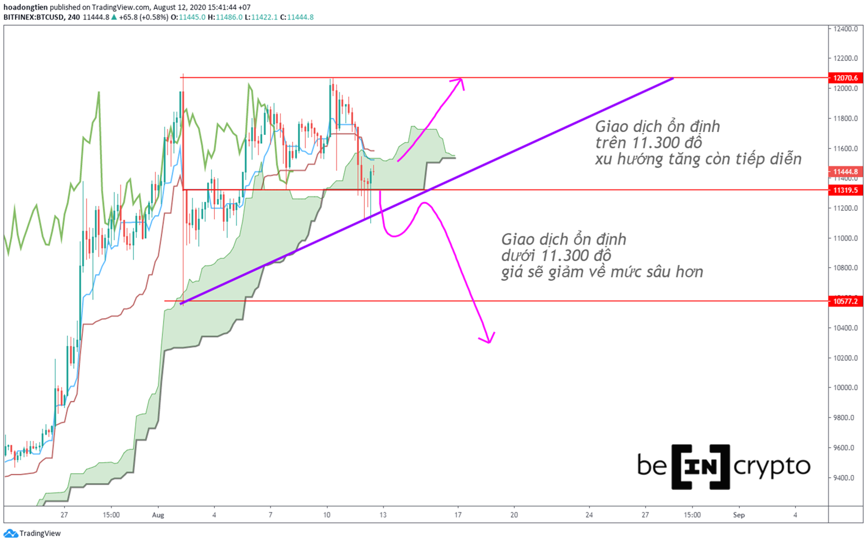 Theo cách đo đạc trung bình của hệ thống ichimoku, mức giá 11.300 đô la hiện đang là mức giá ranh giới.