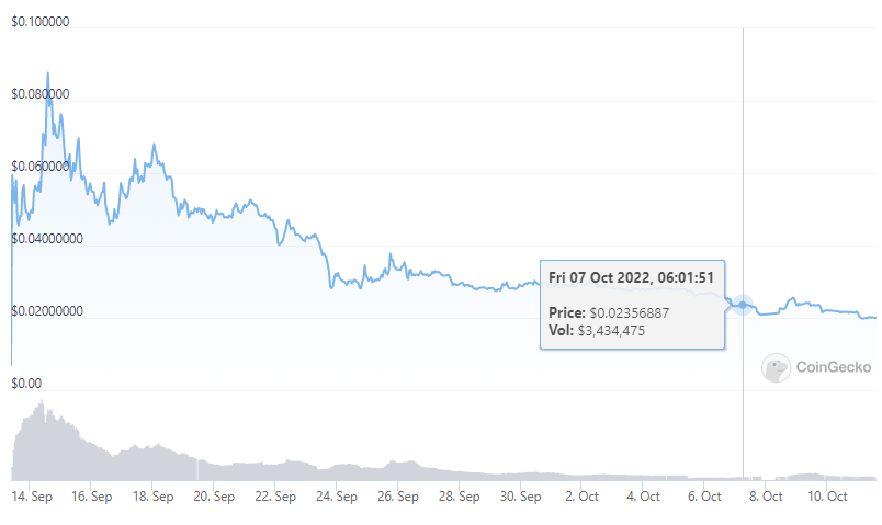 Mã thông báo SWEAT đạt đỉnh ngay sau khi ra mắt và từ đó giảm dần giá trị. Từ mức cao nhất mọi thời đại là 0.091476 USD vào ngày 14/9, SWEAT hiện là 0.02022217 USD tại thời điểm viết bài. Điều này đánh dấu sự sụt giảm 77.9%.