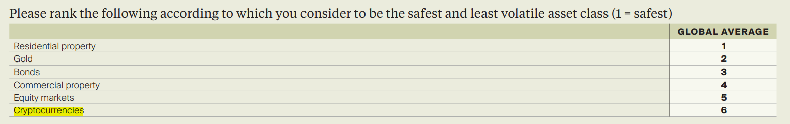 Khi được hỏi về thứ tự an toàn trong các tài sản được phân bổ, thì các tỷ phú đã xếp Crypto đứng chót.