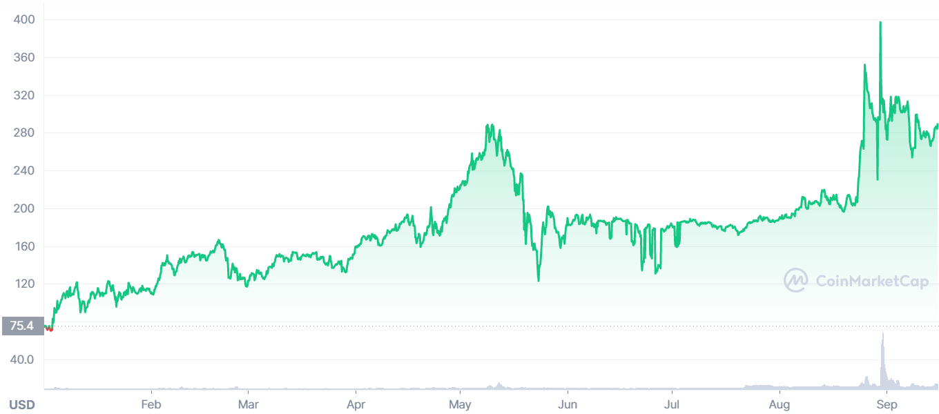 Đồng token OWL được tạo ra bằng cách stake GNO. Đồng GNO đã bùng nổ về sự tăng trưởng trong sáu tháng qua. Nó đã tăng 284% kể từ tháng Một và hiện tại đang có mức giá vào khoảng 290 USD.