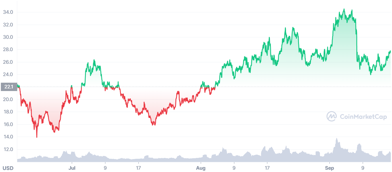 Vào tháng 4, Balancer (BAL) và Gnosis đã cùng hợp tác để cho ra mắt Balancer-Gnosis-Protocol (BGP). Balancer thường xuyên truy cập vào 10 DEX hàng đầu để thực hiện công cụ tạo thị trường tự động (AMM). Vốn hóa thị trường hiện tại của BAL là 191.2 triệu USD, và mức giá hiện tại của BAL là 27.53 USD.