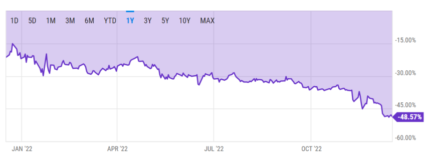 Grayscale’s Bitcoin Trust, hiện đang quản lý khoảng 10.78 tỷ USD tài sản (khoảng 633,000 BTC). Đến nay, quỹ đã không đạt được mục tiêu của mình. Hiện GBTC đang chiết khấu 48.8% so với Bitcoin.