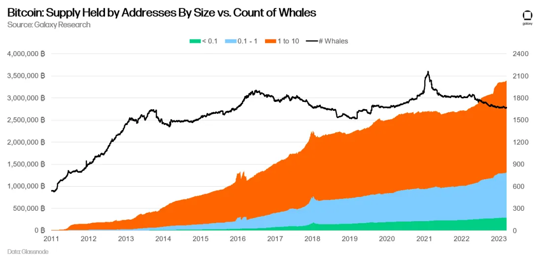 Dữ liệu của Galaxy Research cho thấy có một sự dịch chuyển đáng kể lượng BTC từ những ví lớn sang các ví nhỏ.