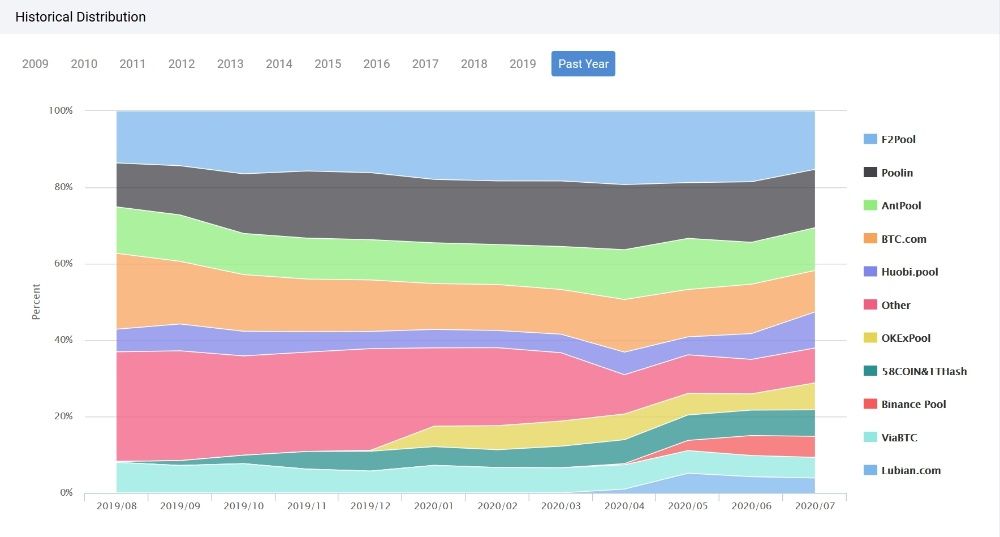 - F2Pool: F2Pool đã khai thác đến 18% các blocks trong năm qua.