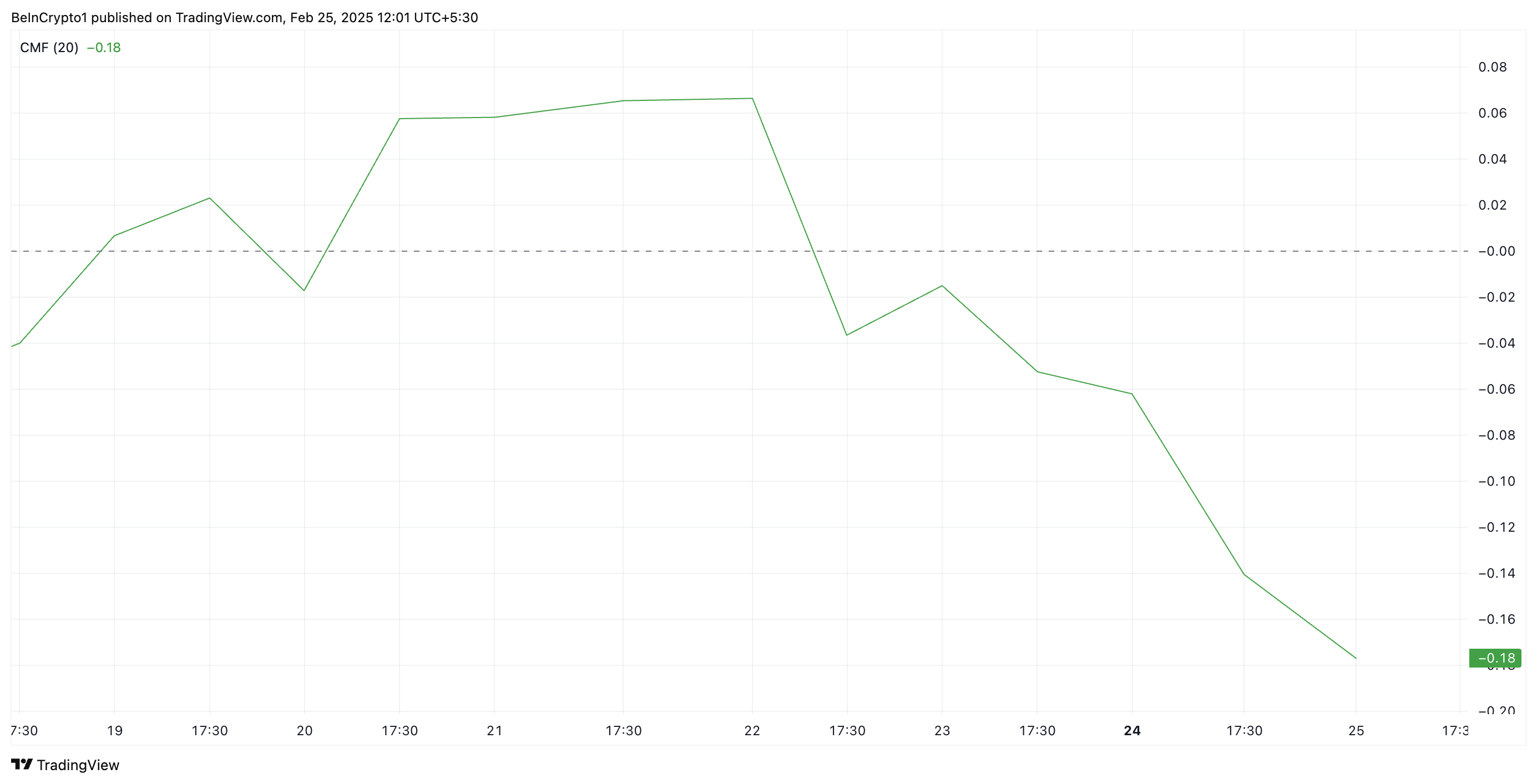 Hơn nữa, Chaikin Money Flow (CMF) của HBAR cũng khẳng định triển vọng giảm giá này. Nó đang có xu hướng giảm dưới đường zero tại thời điểm viết bài.