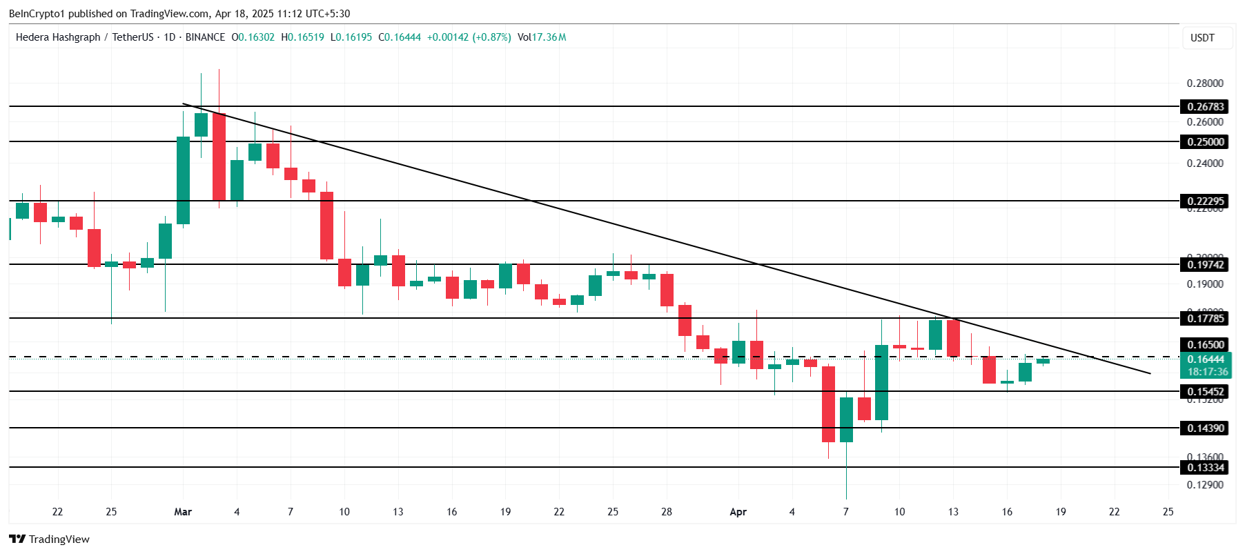 Token HBAR của Hedera đang đối mặt với sự biến động đáng kể trong những ngày gần đây, khi giá của nó tiếp tục gặp khó khăn trước xu hướng giảm đã kéo dài trong vài tuần qua.