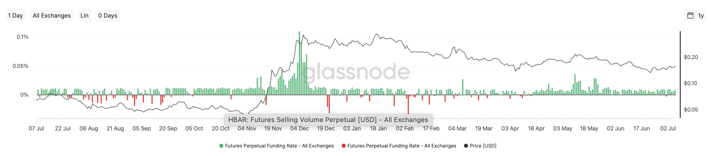 Các nhà giao dịch hợp đồng tương lai đang dần chuyển sang xu hướng tăng đối với HBAR, như thấy trong tỷ lệ tài trợ tăng trên các hợp đồng vĩnh viễn. Từ đầu tháng 06, phần lớn các nến đều xanh, có nghĩa là các vị thế mua đang trả cho vị thế bán, một dấu hiệu điển hình của xu hướng tăng trở lại.