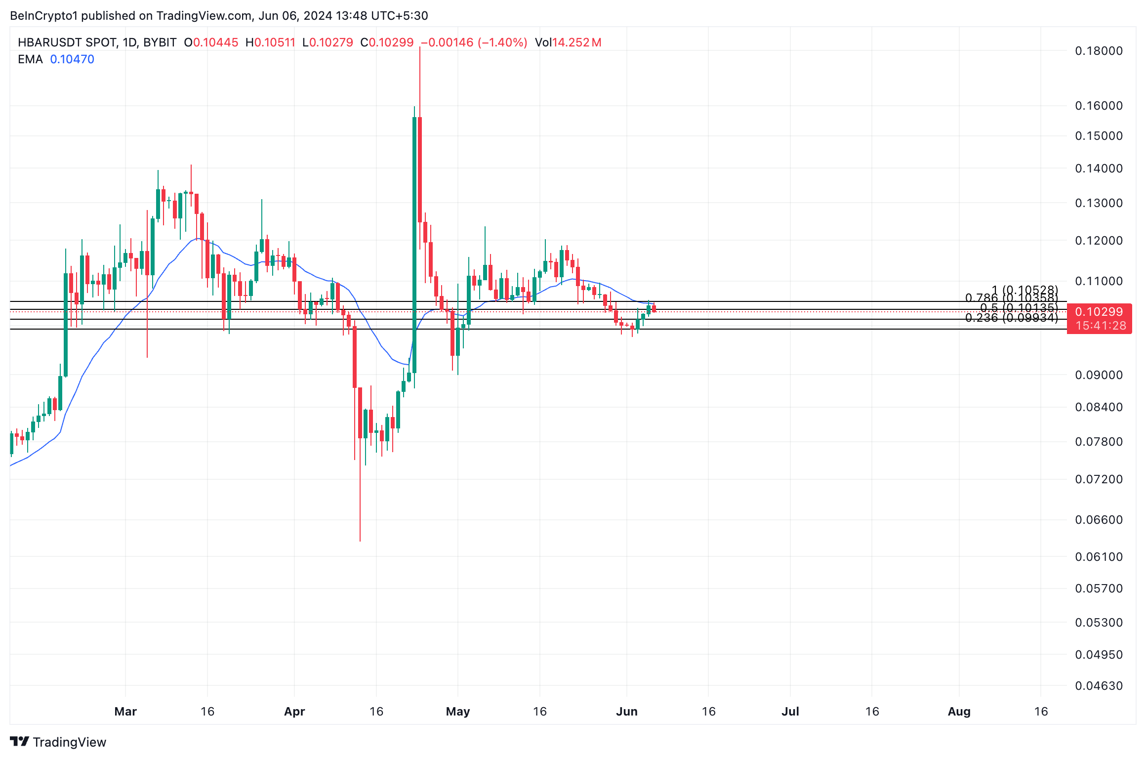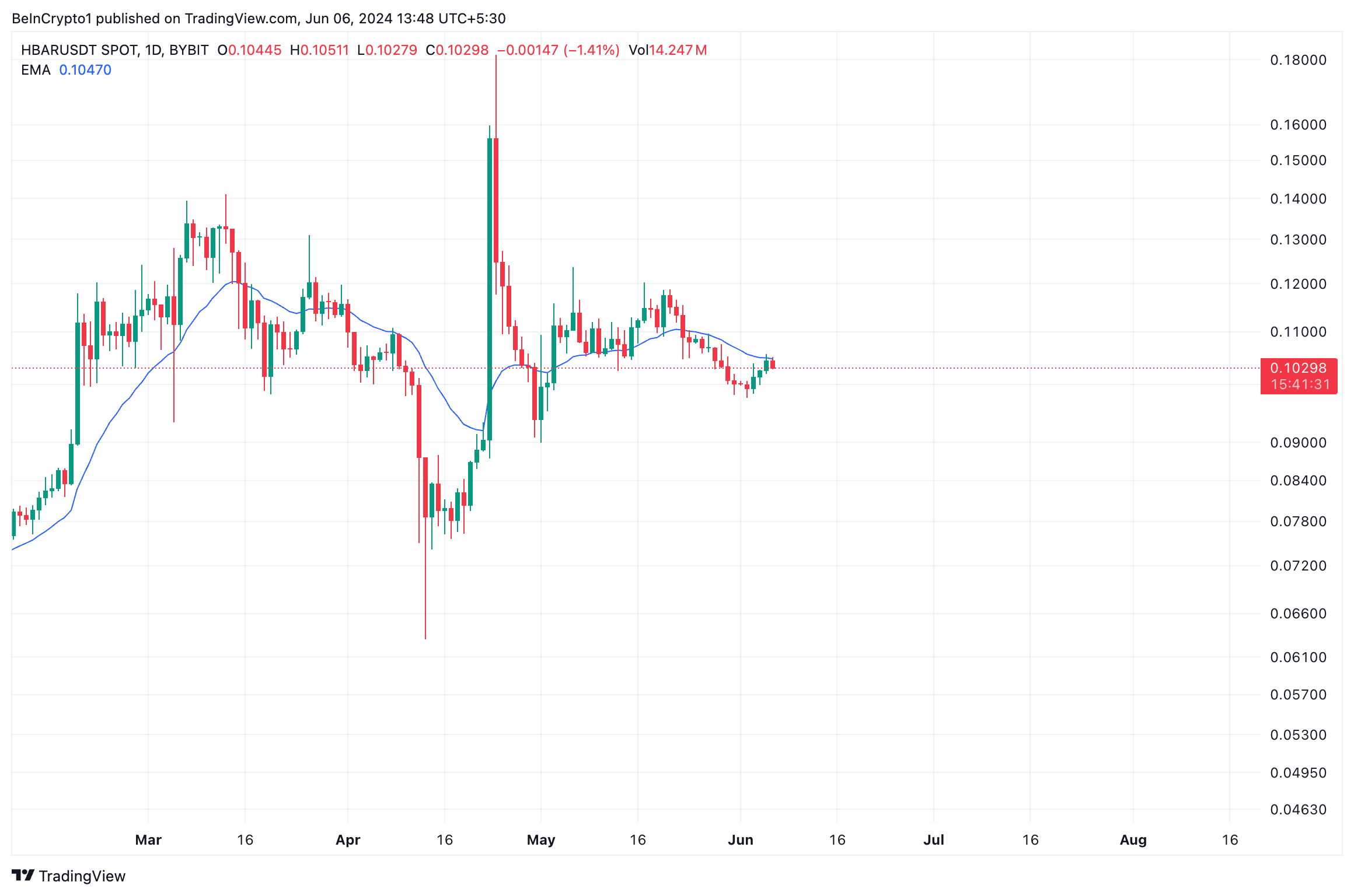 Tại thời điểm BeInCrypto viết bài này, giá Hedera (HBAR) được giao dịch ở mức 0.1031 USD. Trong tháng qua, giá của nó đã đạt đỉnh ở 0.12 USD vào ngày 17/05 và kể từ đó đã giảm 16%.