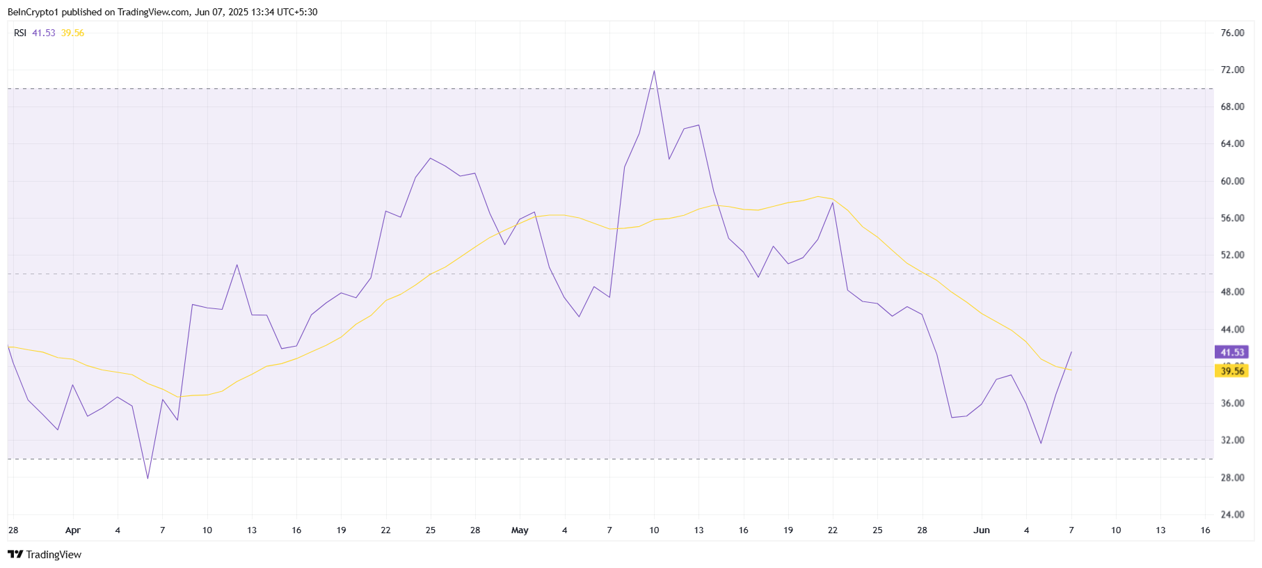 Từ góc độ vĩ mô, các chỉ báo kỹ thuật của HBAR cũng đã chuyển sang xu hướng giảm. Chỉ số Sức mạnh Tương đối (RSI), đã trượt vào vùng giảm giá vào cuối tháng 05, đạt điểm thấp nhất trong hai tháng vào tuần này.