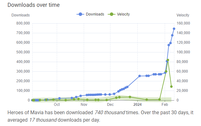 Cụ thể Heroes of Mavia (MAVIA) đã có 740,000 lượt tải, và số lượt tải hằng ngày trong tháng 2 tăng mạnh khi token này bắt đầu được niêm yết trên các sàn, lên đến 17,000 lượt mỗi ngày. Phương thức nhận airdrop của dự án cũng khá đơn giản, người dùng chỉ cần đăng nhập game và kết nối ví. Những yếu tố trên đã thúc đẩy lượt download MAVIA.