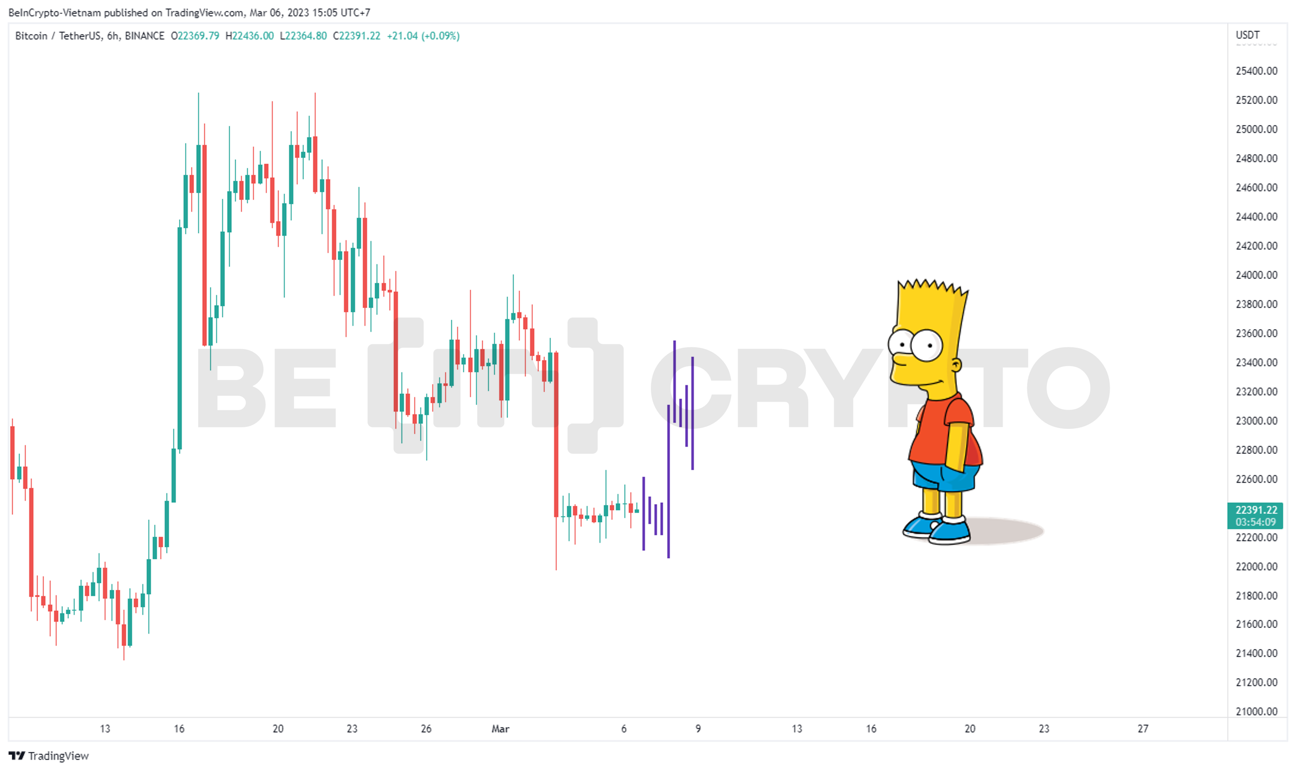 - Trước mắt, trong khung 6h, BTC đang gợi mở biên độ từ 21,900 USD – 22,600 USD sẽ là giới hạn hẹp của biến động sideway. Và mức trung bình giá liên tục neo về sẽ là 21,400 USD. Với biên độ này, các nhà giao dịch dễ nóng lòng dùng đòn bẩy lớn.