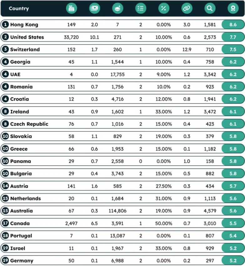 Hồng Kông có lợi thế khi miễn thuế với nhà đầu tư hoặc doanh nghiệp tiền điện tử. Vùng lãnh thổ này còn được đánh giá là “thủ đô châu Á cho các máy ATM tiền điện tử”. Ngoài ra, nhiều doanh nghiệp tiền điện tử mở rộng nhanh chóng tại đây mặc cho diện tích lãnh thổ khiêm tốn hơn các quốc gia khác.
