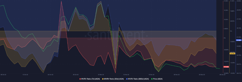 ADA đã giảm hơn 90% so với mức giá ATH là 3.1 USD được thiết lập vào tháng 9/2021. Khi giá kiểm tra các mức giá từ tháng 1/2021, xem xét chỉ báo Market Value to Realized Value (MVRV) của đồng coin này sẽ thấy rằng những người nắm giữ dài hạn sẽ chịu tổn thất nặng nề.