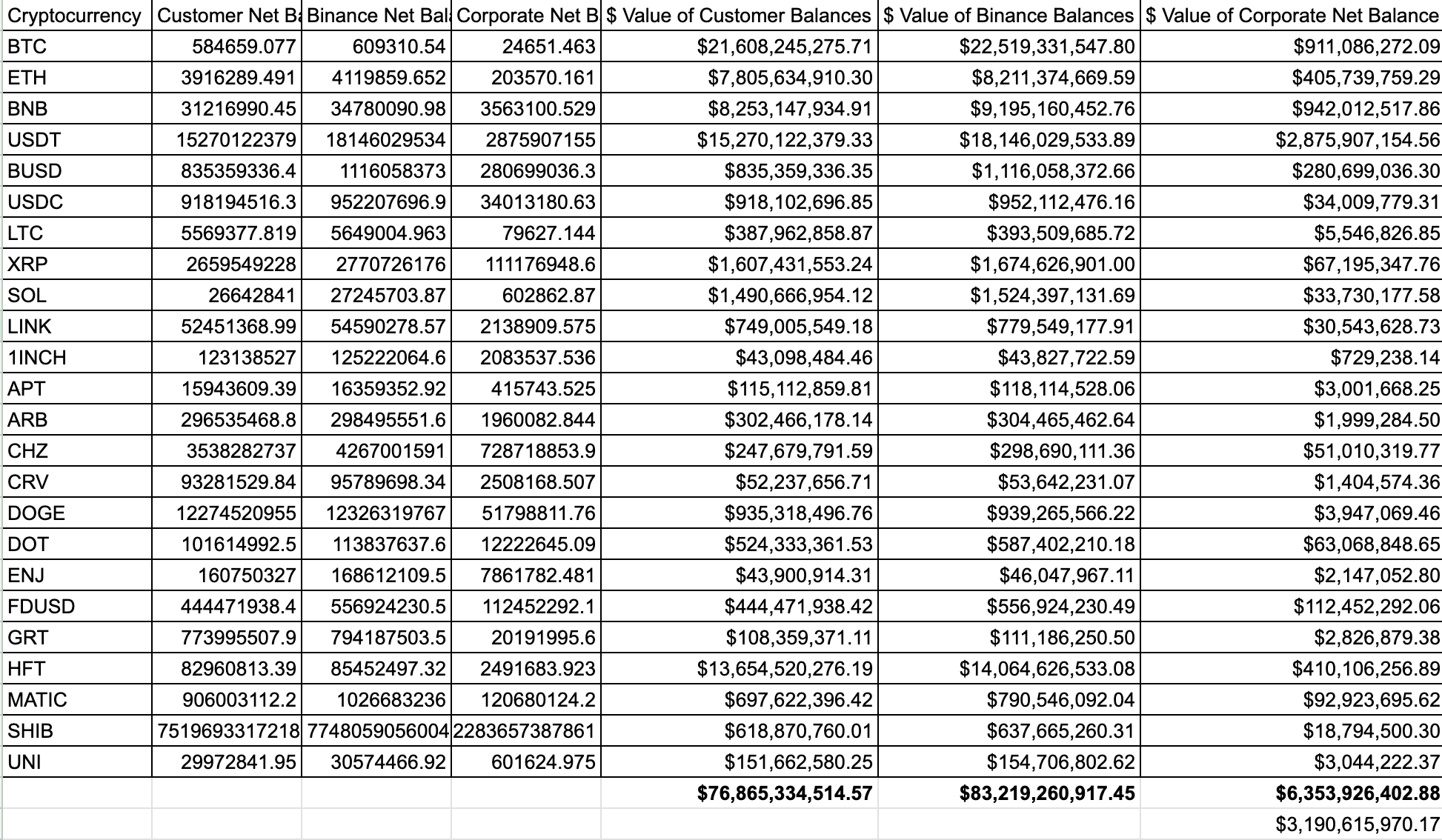 Thống kê báo cáo dự trữ trên của sàn Binance được đăng bởi @jconorgrogan và đã được CEO mới của Binance là @_RichardTeng xác nhận với hàm ý khẳng định năng lực tài chính hiện tại của Binance.